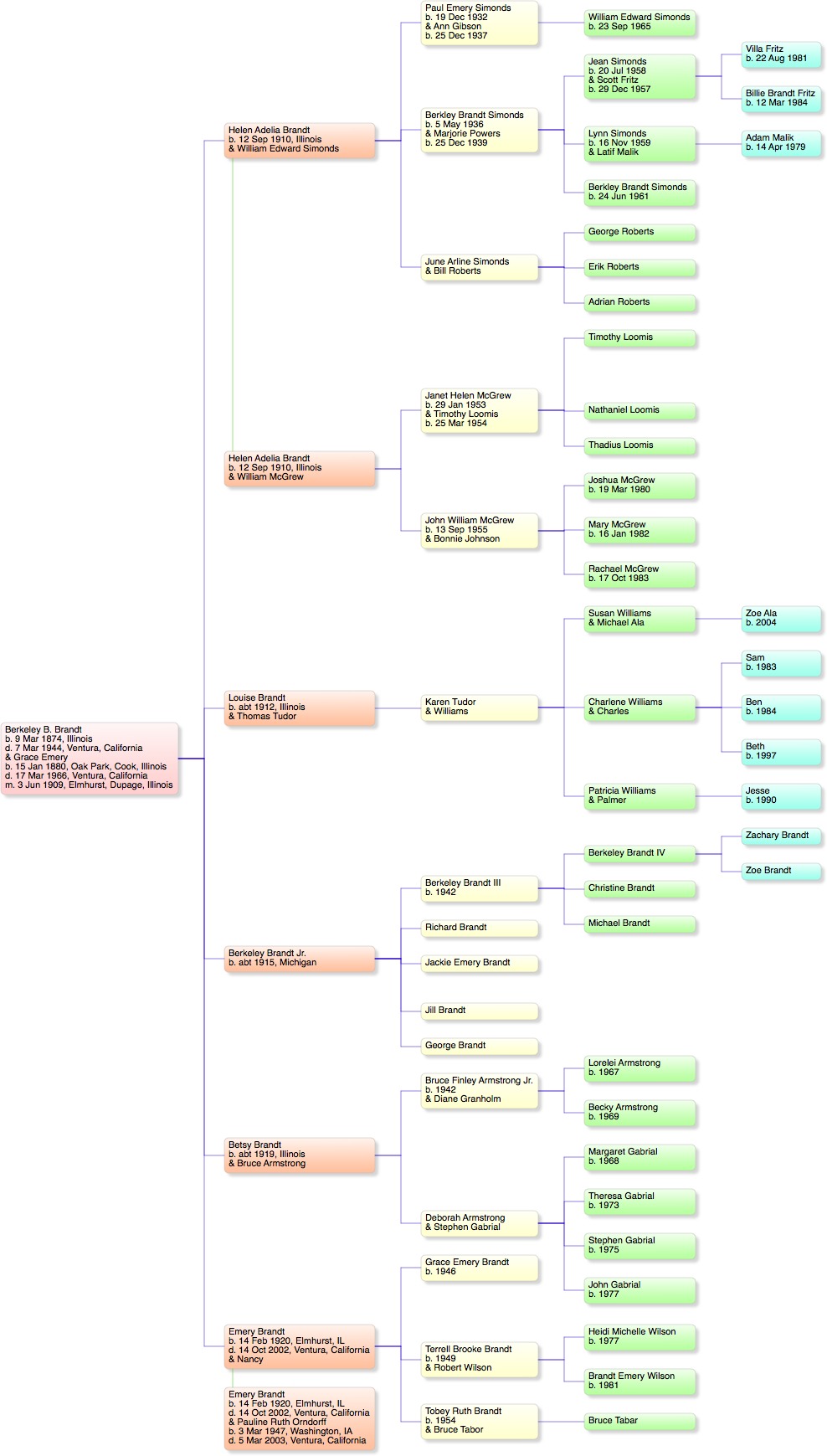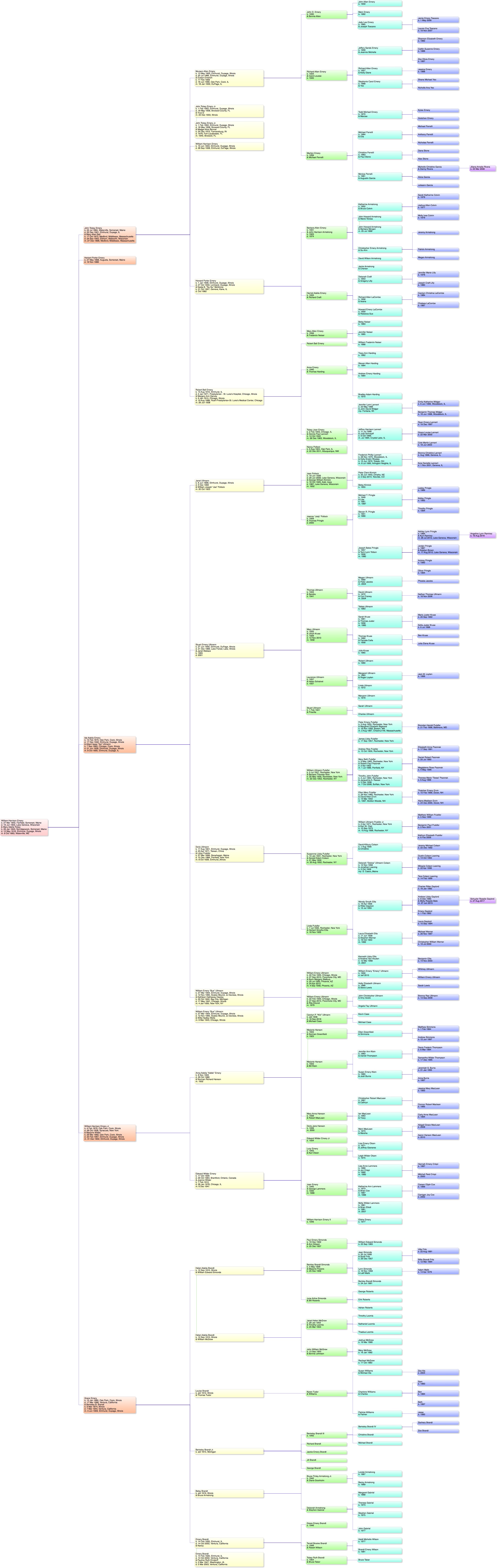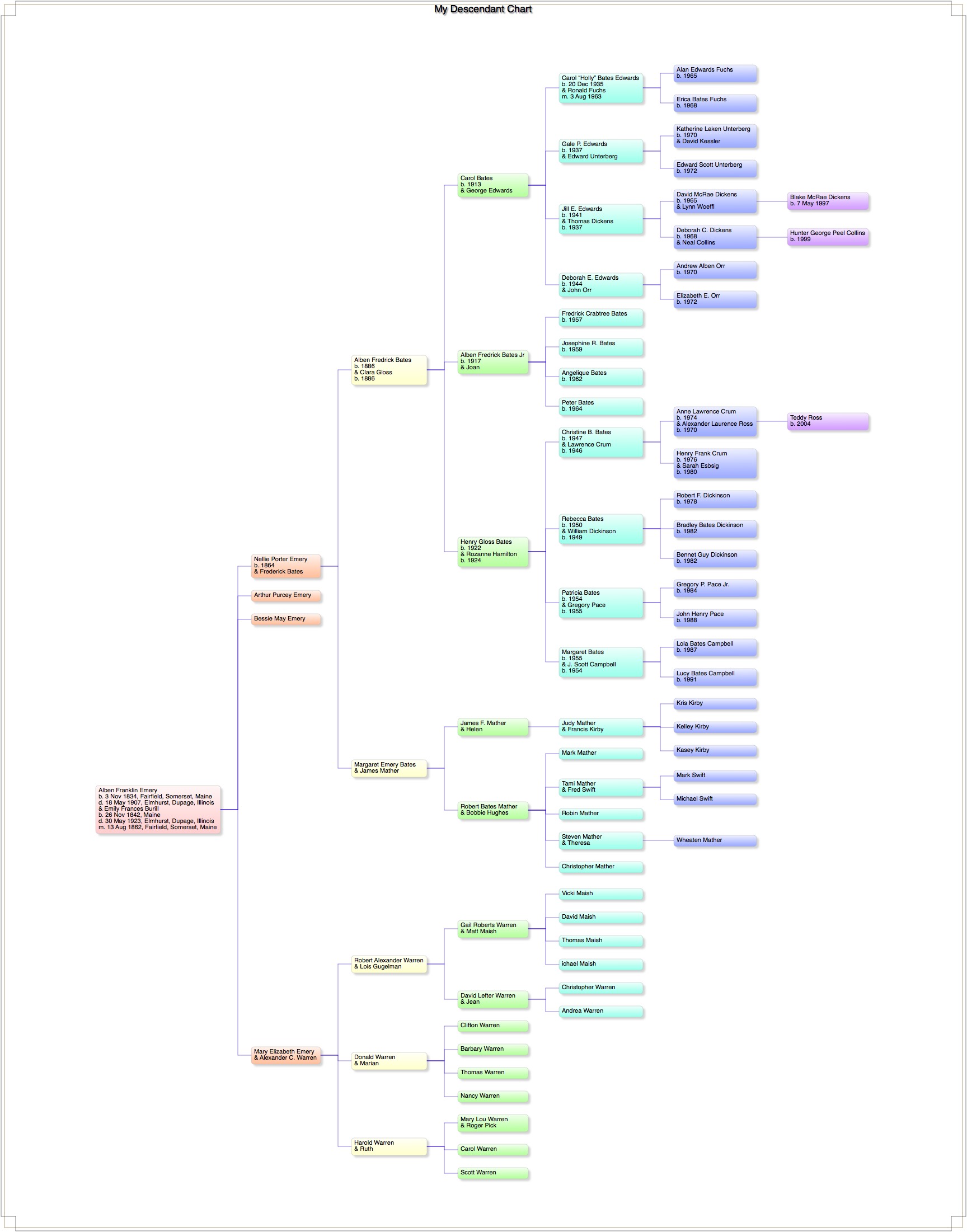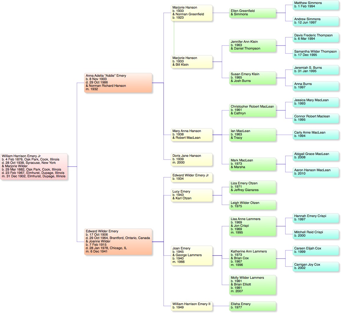 Charts: Charts are available in JPEG format of the descendants of Alben and William H. Emery. The charts are big, and will not fit onto the screen of most browsers, nor will they print onto a single sheet of paper. Still, you might find them useful.