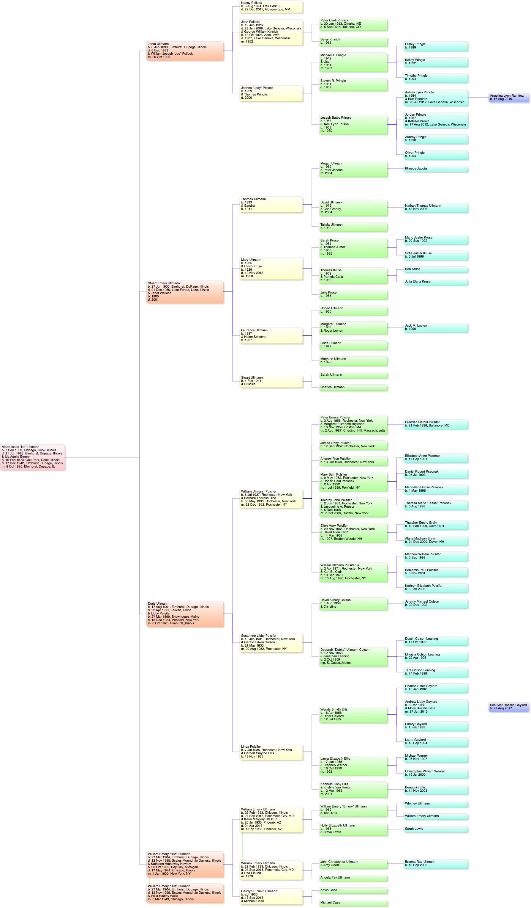 August 2015: material is significantly updated, including more background on Tobeys and Ullmanns. Also, click on the tree symbol in the corner of a card to see an overview of the person's lineage.